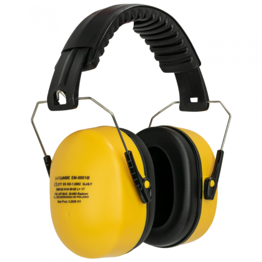 Căști anti-zgomot tip EM-5001. Cu o bandă pentru cap. Copertine (cochilii) din plastic ABS, umplutura de perne si copertine din spuma PU. Greutatea căștilor anti-zgomot este de 265g.